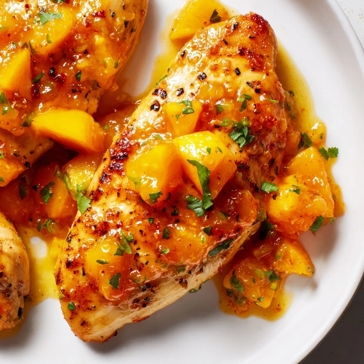 This vibrant main dish features juicy chicken breasts glazed with a sweet and spicy sauce made from fresh ripe peaches and jalapeno peppers. The honey-kissed sauce balances fruit sweetness with gentle heat, creating a perfect summer dinner ready in just 45 minutes.